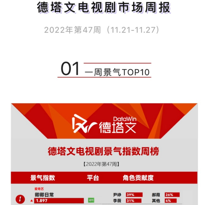 11月28日,德塔文发文称这部剧的单周正片播放指数为231235,播放市占高达31.78%,成为了网剧周榜冠军,而且这还是该剧连续第二周登上网剧周榜冠军。